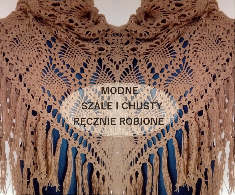 Szal z ażurowym wykończeniem - ręcznie robiony, dodatek który jest ciągle modny. Wystarczy zarzucić zwiewny szal na ramiona a twoja stylizacja zyska i nabierze niepowtarzalnego charakteru.